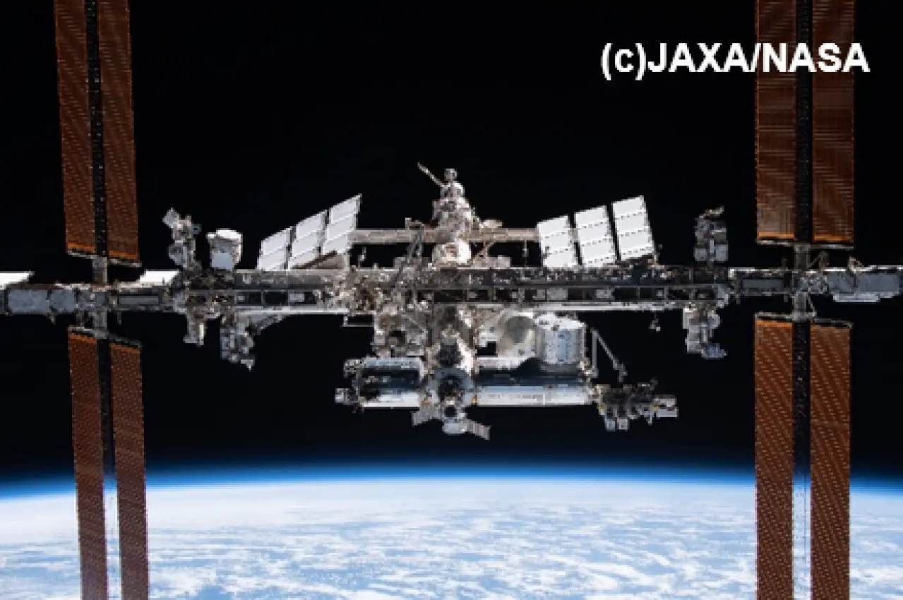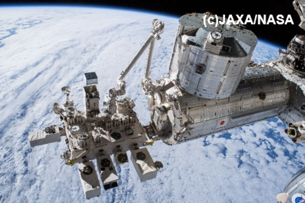 図1:国際宇宙ステーション(ISS)(左)の一部を構成する「きぼう」日本実験棟(右)