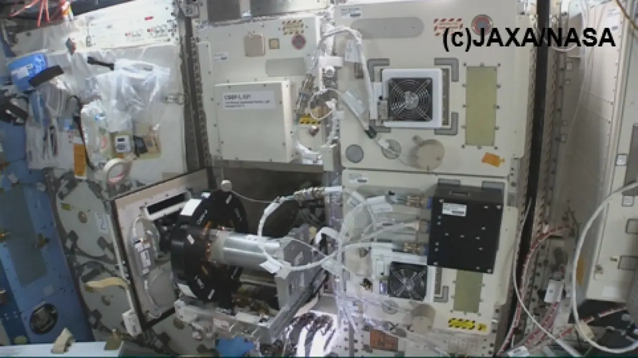 「きぼう」日本実験棟(図1)に設置されている細胞培養追加実験エリア(図2:以下、CBEF-L)の人工重力発生機へ醸造装置(図3)を設置して実験を行います。世界で初めて日本酒醸造特有の技術である並行複発酵現象を宇宙空間で確認予定です。