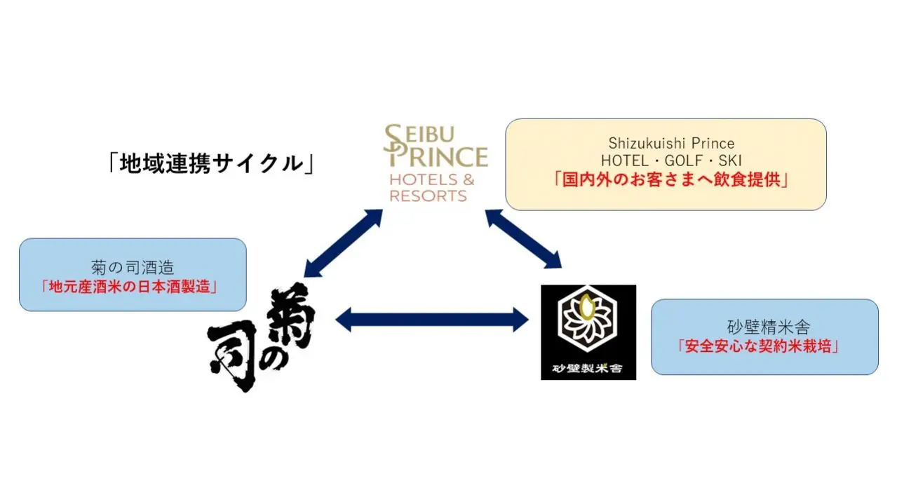 地元雫石町の企業連携、当ホテルと酒造会社・地元で栽培された酒米とのコラボレーション。特性を活かした地域貢献を行ってまいります。期間中は料理に合わせた日本酒を、菊の司酒造と一緒におすすめする「Japanese SAKE」の魅力を発信いたします。今後も雫石プリンスホテル・スキー場・ゴルフ場は、サステナビリティアクションの取り組みとして、地域と連携し地産地消の推進を図ってまいります。